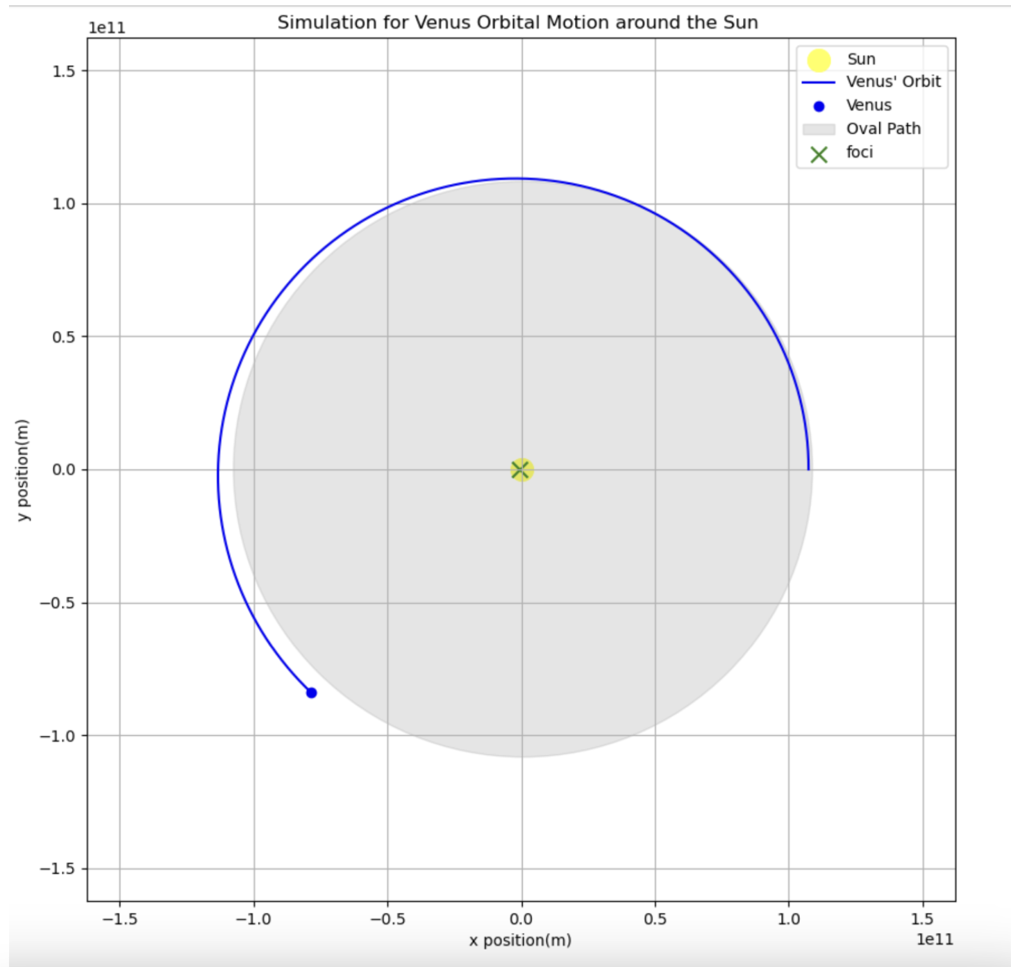 This project simulates the orbital motion of Venus using Kepler’s Laws and Newtonian mechanics. The primary objective was to analyze Venus’s orbit and determine whether it follows a perfect circular path or an elliptical one, using numerical methods and gravitational force calculations.